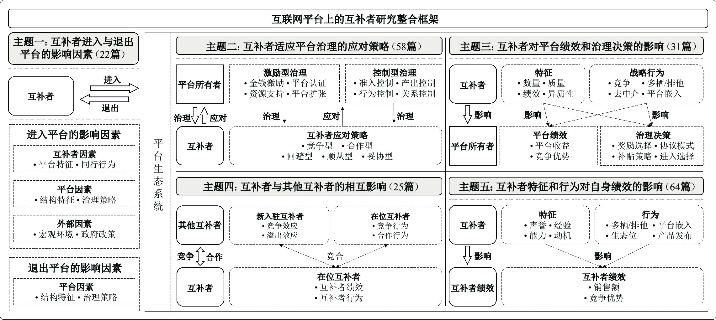 | 资料来源:作者根据相关文献绘制。 图 2 互联网平台上的互补者研究整合框架 |
