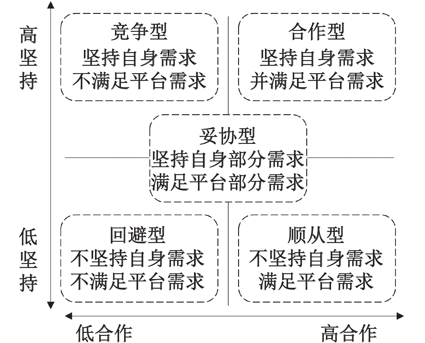 妥协型应对指坚持性和合作性均处于中等水平,具体表现为互补者只坚持自己的部分需求,但也只满足平台的部分需求。
